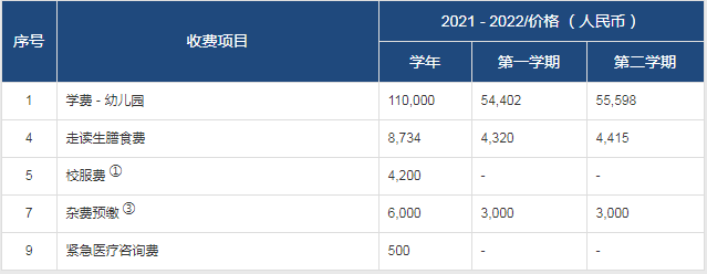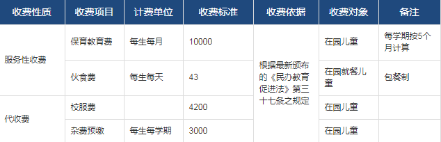 威雅国际幼儿园收费公示表
