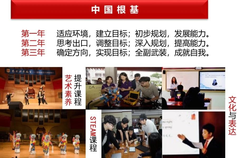 我校为学生提供了系统的课程安排。高一年级开设通识基础课程,帮助学生在国家必修课程基础上融合、接纳美方课程。高二年级设置专业拓展课程,学生可接触到更多与专业相关的美国大学先修课程,为专业探索打下学术基础。高三年级,学生可参与全球名校自由申请项目,并修习学术英语、美国大学先修课程、中国语言与文化等学术课程,为申请世界名校做好充分的学术准备。此外,我校提供丰富的课外活动。学生可以参与各类学术竞赛、文化交流活动、志愿服务项目等,通过参与这些活动,学生能够发展自己的兴趣爱好,培养综合素养,为将来的学术和职业发展打下坚实基础。