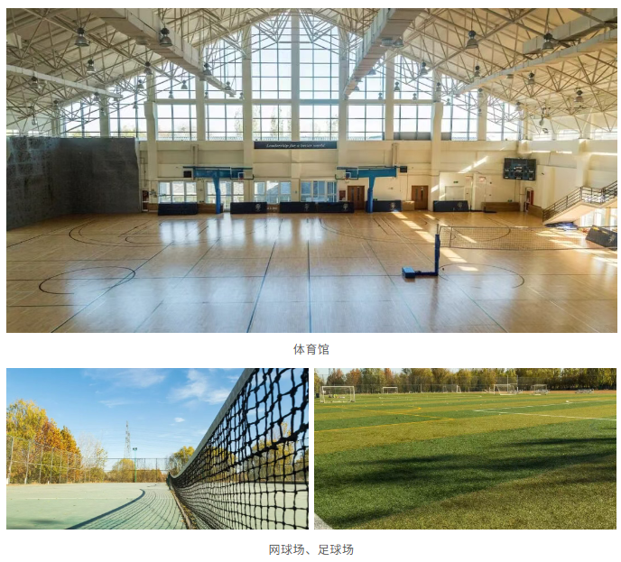 运动场馆包含25米长的游泳池、一个集羽毛球场、排球场和篮球场为一体的体育馆,还有一面攀岩墙。户外配有网球场、足球场和橄榄球场。