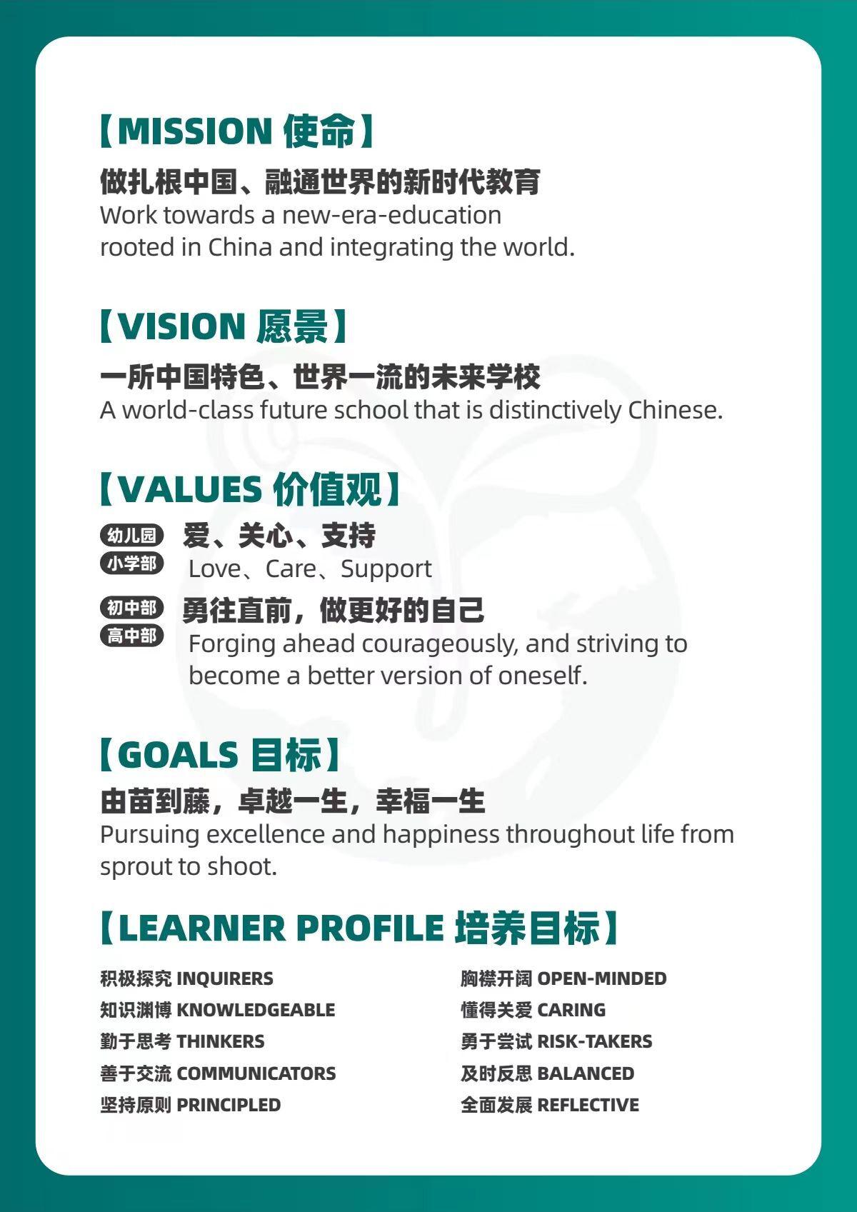 国际文凭(IB)教育理念:探究式、项目制教学理念,注重以人为本、知行合一,注重培养创新精神和实践能力。