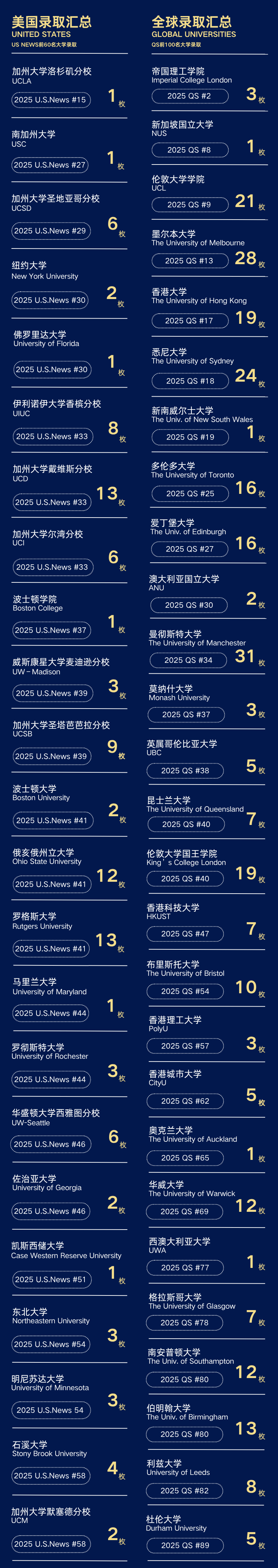25%被世界排名前10大学录取