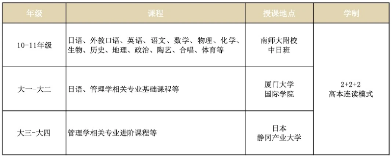 日语+管理学相关的专业基础课程、参加赴日选拔考试。