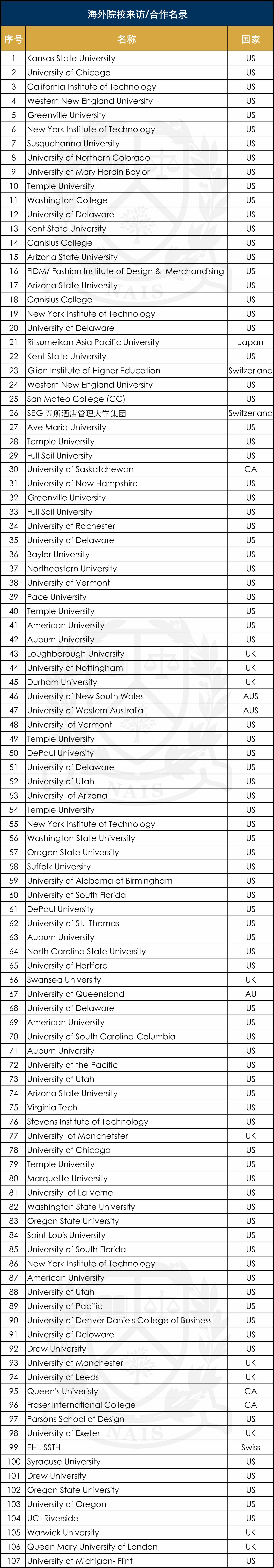 与美、英、加、澳等6个国家遍及4大洲的众多海外院校保持密切的联系与合作,其中包括加州理工、芝加哥大学、帕森斯设计学院、女王大学等顶尖学校;每年至少邀约100余所大学来校访问;还有相当一部分大学直接签署招生协议。