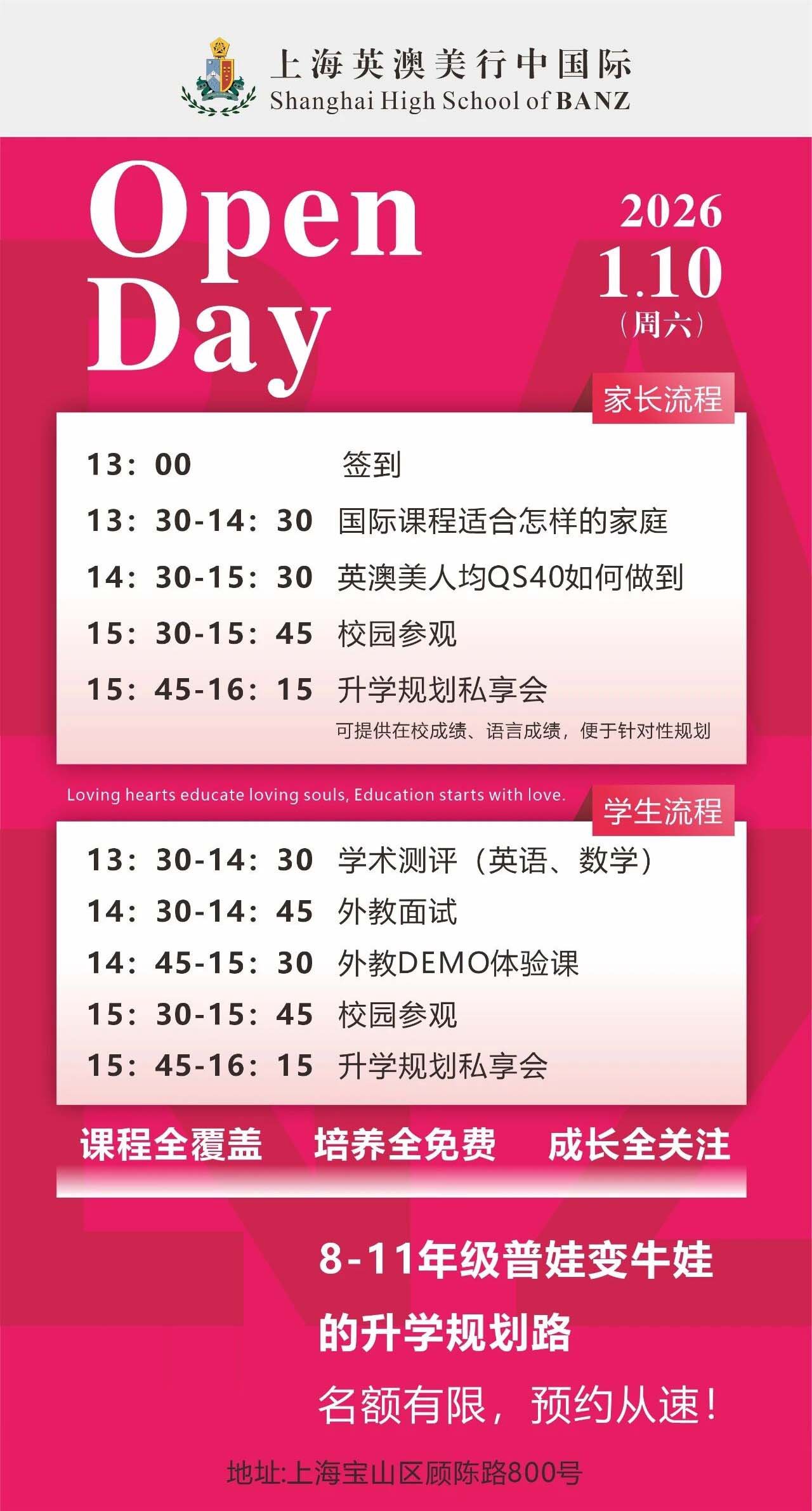 当天参与开放日,还有机会解锁“现场预录取”福利!提前锁定学位,让孩子升学更有保障,家长更安心。