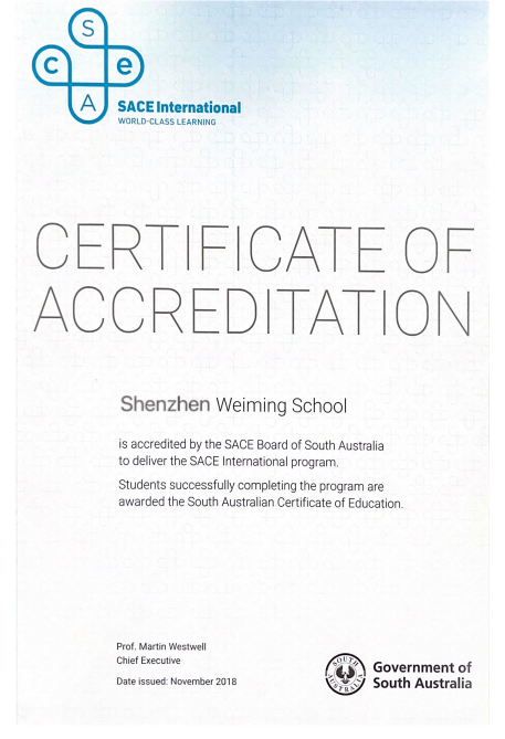 深圳市南山为明学校国际部是深圳市唯一开设澳洲课程的国际学校,其SACE课程是澳洲南澳高考局授权,允许学生在中国完成课程,且通过南澳高考局统考后,即可取得南澳高考局颁发的南澳州高中毕业证书。凭该证书,学生可以进入全部英联邦及欧美等国家大学就读本科。同时,学生注册澳洲学籍,享受澳洲本土学生录取名额,由南澳高考局给学生做澳洲大学申请,免雅思直升澳洲世界百强名校。