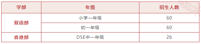 其他年级(双语部小学二至六年级、初二、初三、高二、香港部中二、中三、中五、中六)均招收少量插班生。