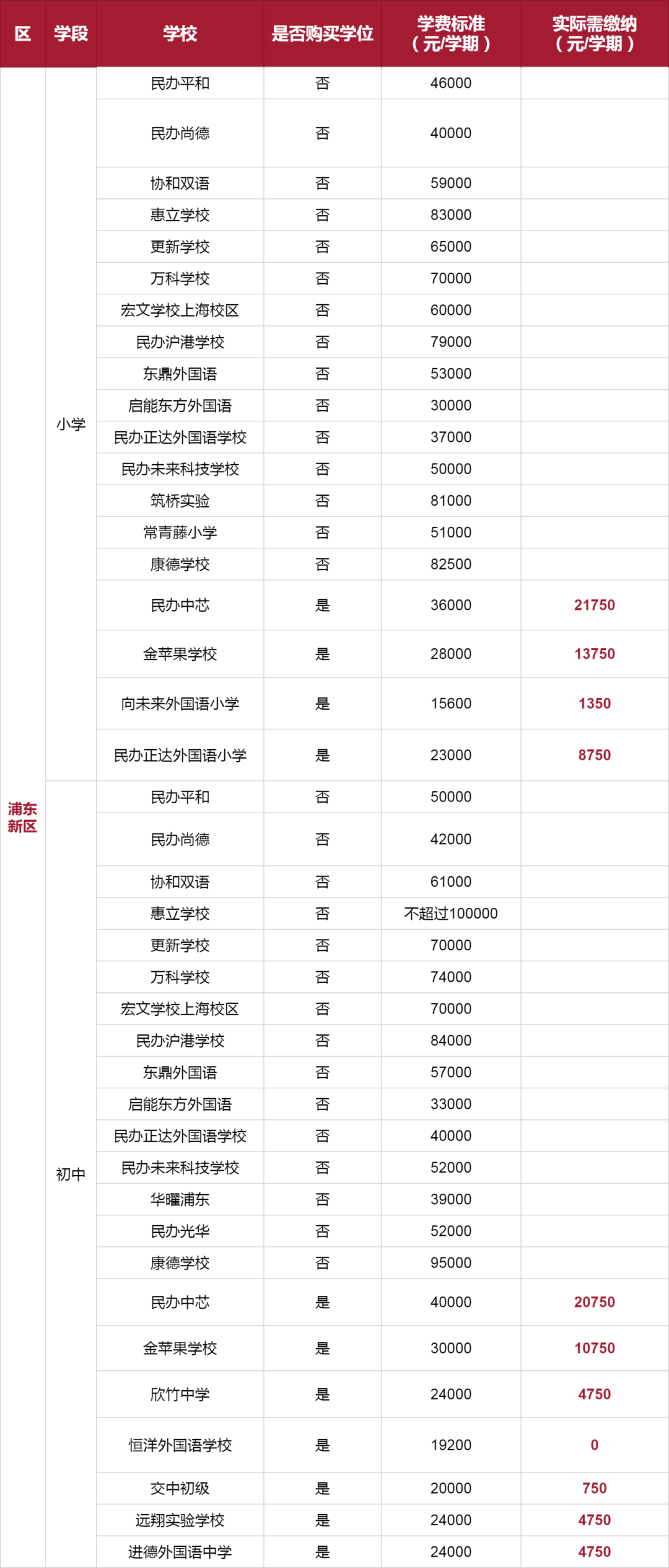 浦东新区的学校资源丰富,学校收费分层比较明显。尚德、中芯、金苹果、欣竹等学校在24年重新调整了收费标准。