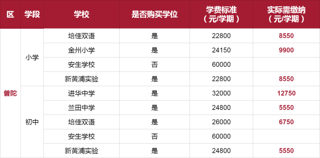 普陀区也是政府购买学位的大户,但相比静安,去年多校学费迎来上调,涨幅在3800-5000元/学期左右。