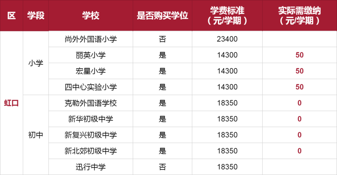 虹口区学费基本变化不大,而且大多数民办校都被纳入政府购买学位范围,还是很“香”的~