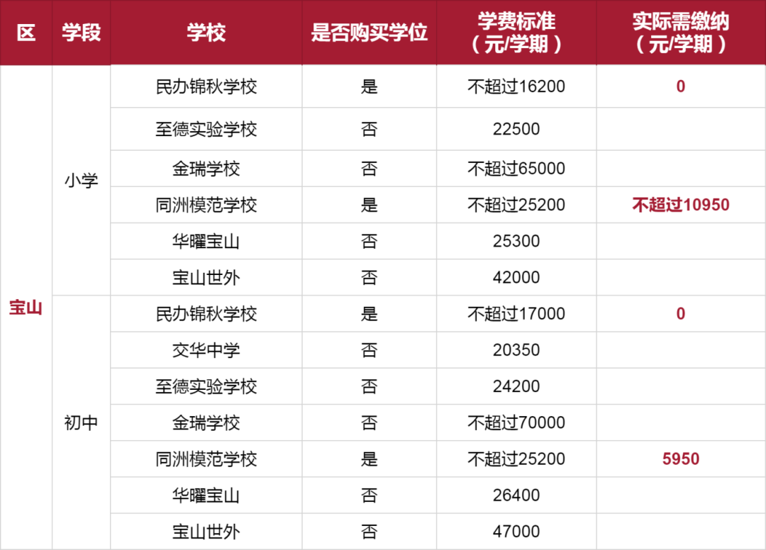 宝山区学校费用比较均衡,还有2所“0元入读”的学校,选择还是很多的。但考虑到去年大多数学校都是超额摇号,想要冲一把的家长,还是要做好准备。