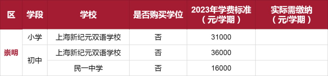 崇明仅2所民办校,都未被政府购买学位,学费变化不大。
