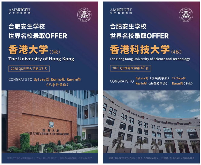 在这场白热化竞争中,我校以破竹之势斩获:安徽唯一3枚香港大学无条件录取、安徽唯一香港大学精英工程项目(录取难度第一)录取;安徽第一香港科技大学无条件录取数、安徽第一462500港币奖学金总额。这份成绩单背后,是精准把握港校录取风向标的战略布局——