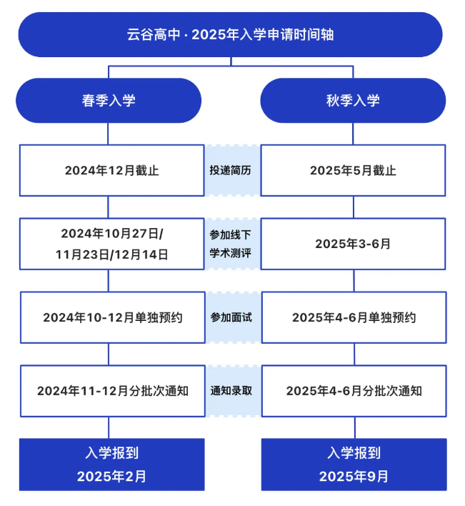 学校目前已获得WASC认证候选校资格,同时也是GAC课程中心与ACT考点、AP School。云谷高中是中国第一所使用素养成绩单申请大学的学校,更是中国第一所跑通素养培养、评价、展示、申请等全流程并拥有完整信息数据技术支持的学校。