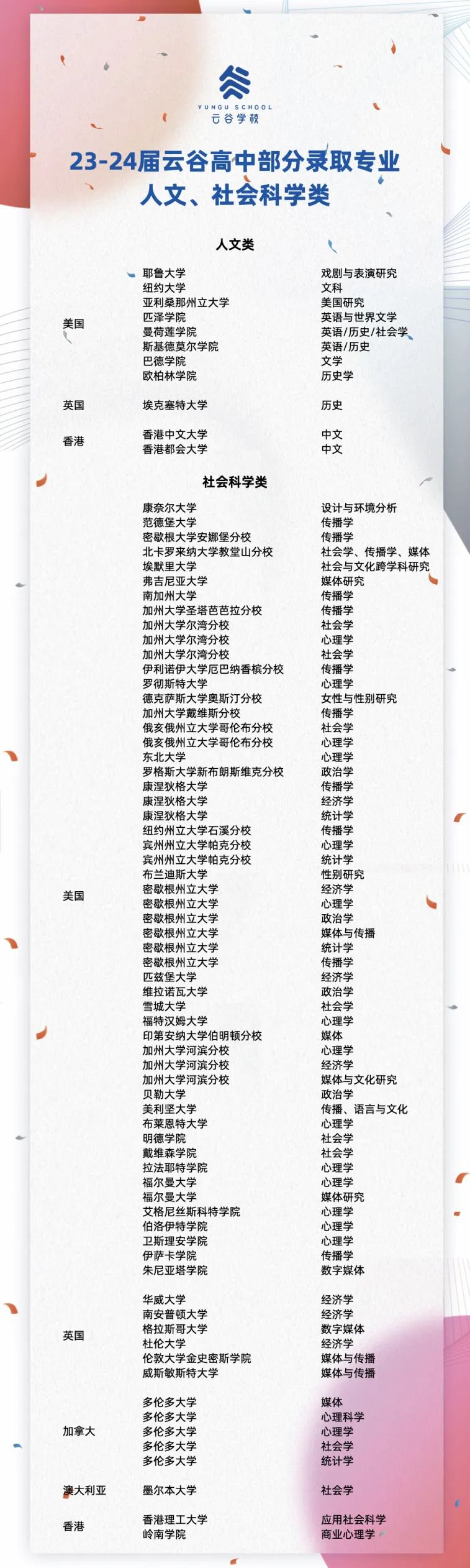 云谷高中助力毕业生海外升学,帮助学生申请全世界的英语授课高校。学术、生活和未来规划有机交织在一起,不仅支持学生为升学做充分准备,更帮助学生形成清晰的中国身份认同,具备全球化理念和国际视野,让学生成为有“中国心、世界眼”的地球公民。