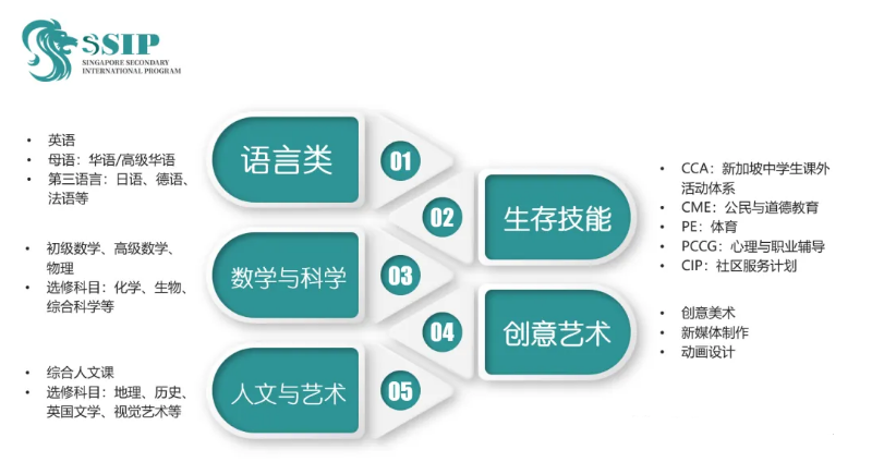 新加坡SSIP项目体系(Singapore Secondary International Program)以新加坡公立中学课程体系为基础,采用新加坡特色双语教学模式。学生完成新加坡中学学分,并参加毕业考试,取得新加坡政府中学毕业文凭(新加坡教育部O Level),凭毕业成绩进入新加坡国内教育升学通道,升入新加坡高校,或者澳、英等其他国家名校。