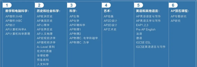 六大类共27门大学理事会AP课程