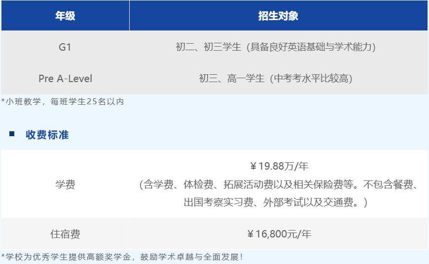 | 7年级预备班 | 小学5年级、6年级学生(需外籍身份) |