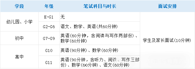 海珠保利校区(筹):学前、小学G1-G6年级、初中G7-G9年级、高中G10-G11年级;