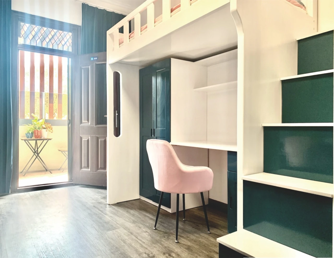初中部温馨可人的宿舍,四人一间,上床下桌,独立卫浴,让孩...