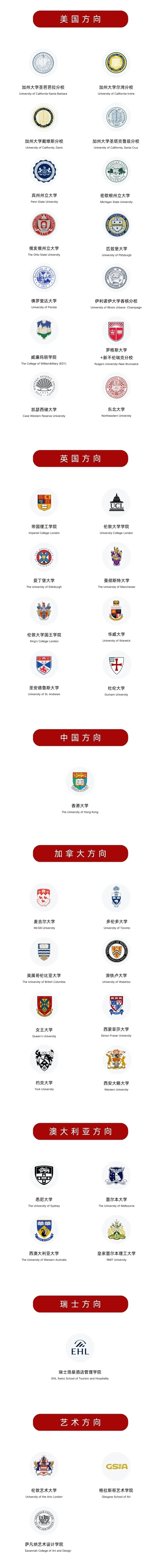 除此之外,爱丁堡大学、巴斯大学、香港大学、杜伦大学、伦敦大学学院、墨尔本大学、多伦多大学、悉尼大学、华威大学、伦敦艺术大学、曼彻斯特大学、伦敦大学国王学院、格拉斯哥艺术学院等顶尖院校都在持续录取华双学子。