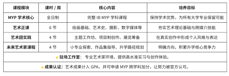 汇佳STEP ART课程,就是汇佳艺术教育针对上述困境的升级项目。我们依托成熟的IB框架,以“1+3”的课程模式,打造“学术+艺术基础+艺术实践+专业探索”的课程体系,为学生构建无缝衔接海外顶尖艺术院校与综合大学艺术专业的升学路径。