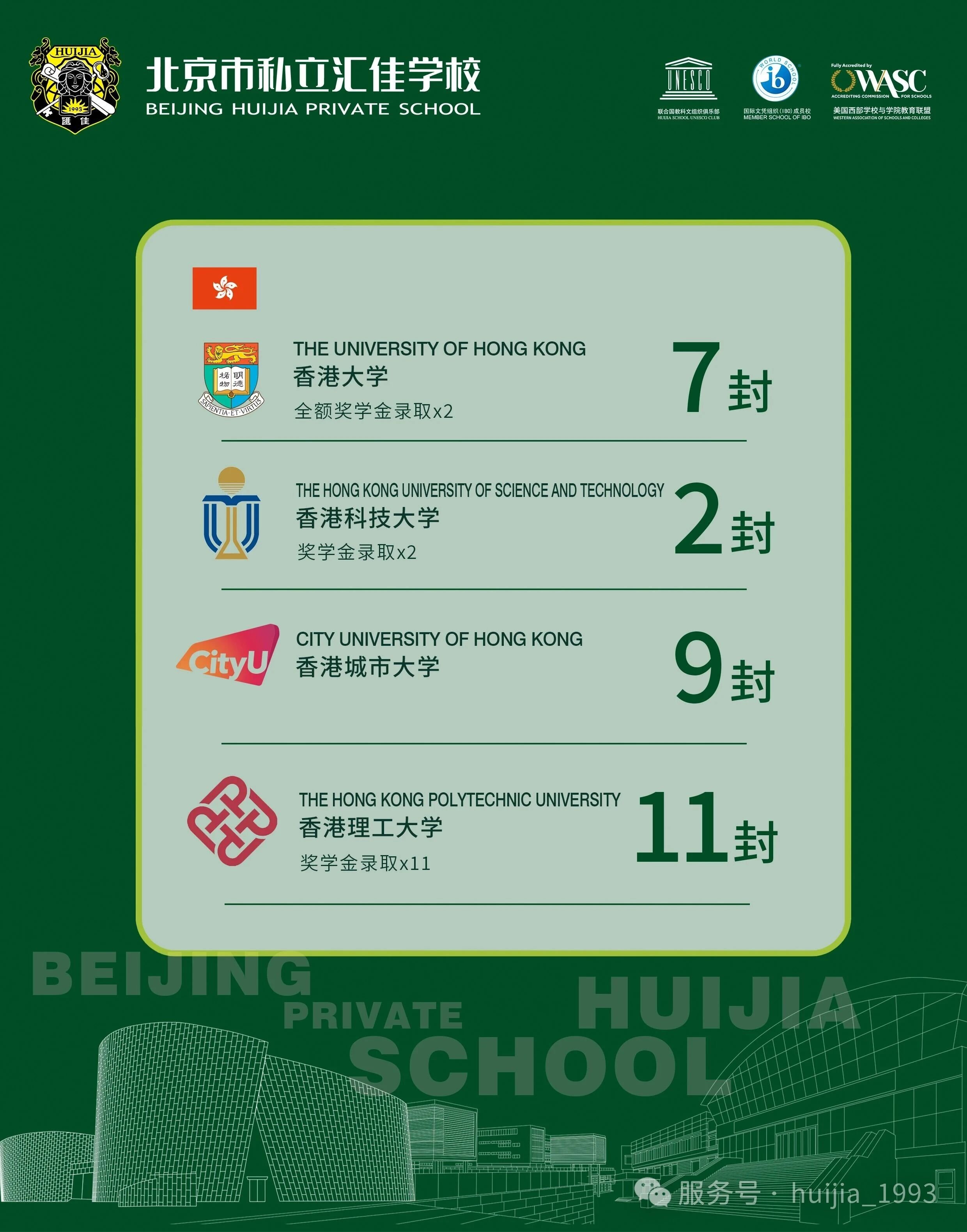 截至1月28日,汇佳学校共收到29封香港方向录取通知,其中香港大学录取7封,包含多封全额奖学金录取。
