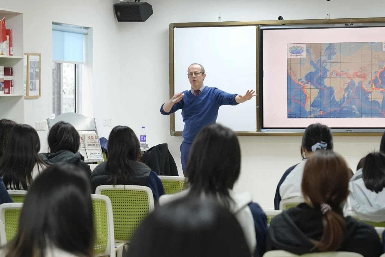 杜伦大学地球科学系Mark教授还为同学们带来了一场精彩的20分钟体验课,聚焦“地震的形成”这一主题,通过生动的案例讲解与互动问答,让学子们直观感受了杜伦大学严谨又生动的学术课堂氛围,进一步加深了对大学专业学习的认知。