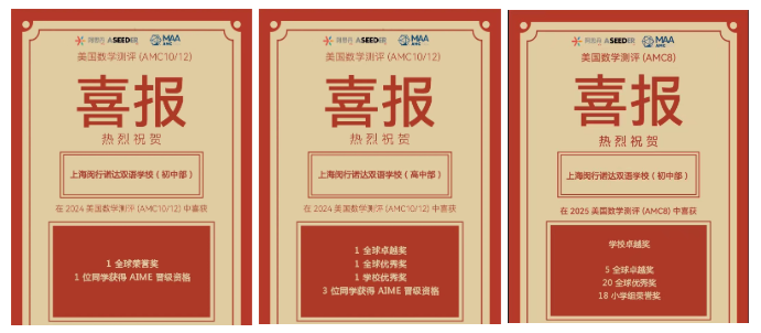 在2025年美国数学测评中(AMC),NACIS小学部学子同样捷报频传:五年级Chloe Gao斩获满分奖及全球卓越奖,四年级Lucas Li获全球卓越奖。此外,共有5人获全球优秀奖,9人收获小学组荣誉奖。中学组方面也是喜报频传,Jackey Zhang包揽全球卓越奖及全球优秀奖,Andy Li获全球荣誉奖,3人晋级AIME。此外,NACIS还获得学校卓越奖,体现了NACIS在数学方向的持续耕耘。