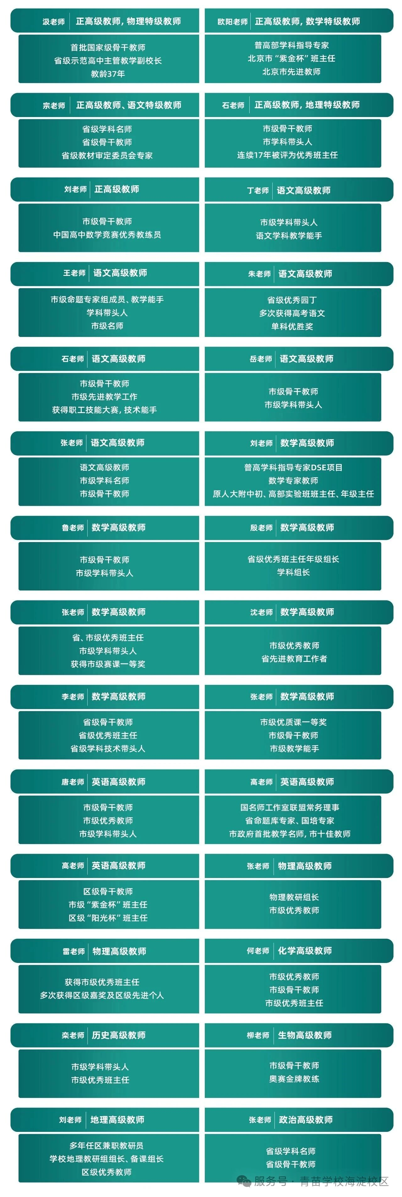 特级、高级教师占比近40%,平均教龄30余年,15年以上高中毕业班带班经验,所教学生绝大多数以优异的成绩考入国内顶尖名校。