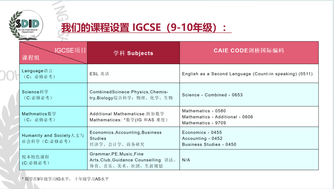 北京师达中学国际部 (Shi Da International Department)建立了剑桥课程中...