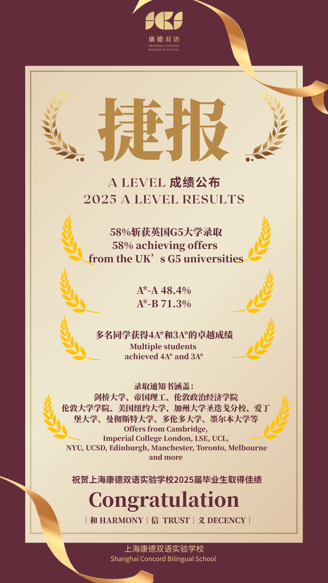 祝贺 上海康德双语实验学校 (以下简称:康德双语)58%的2025 届毕...