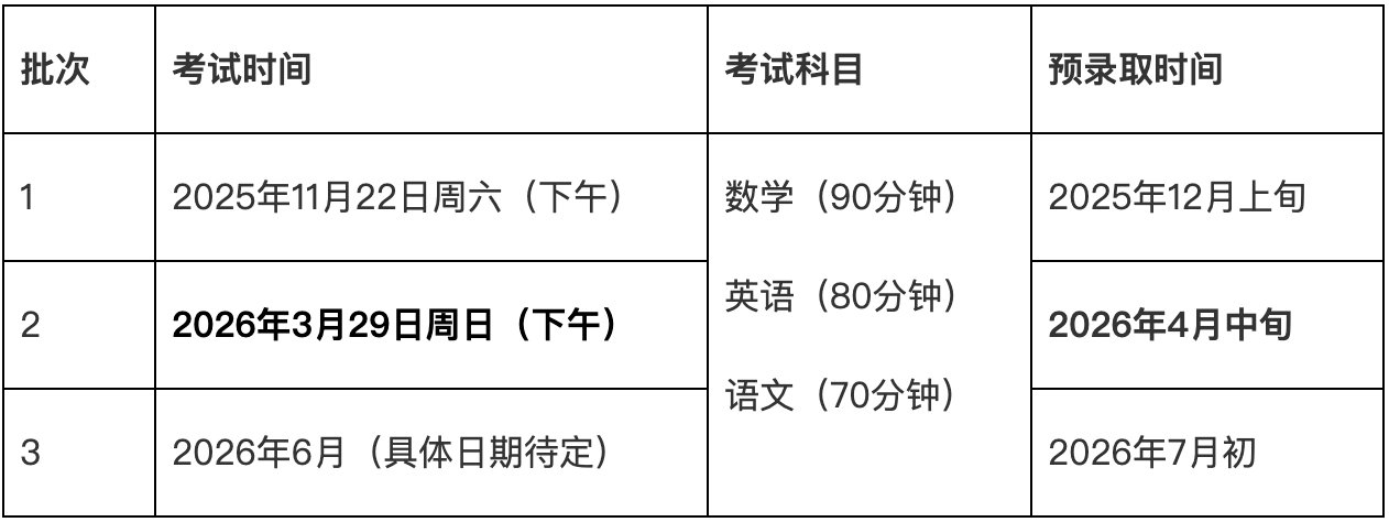 01、徐汇世外招生信息 考试时间 2026年3月29日 2026年6月 考试科目...