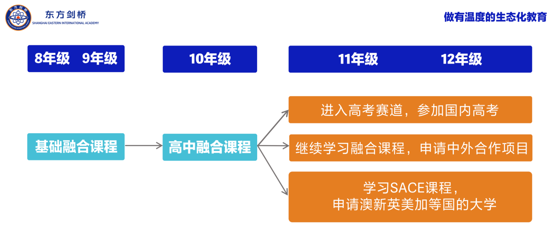 东方剑桥是上实剑桥教育集团旗下的创新教育品牌,秉持“助工薪家庭登世界舞台”的使命,打造中本贯通融合课程体系,打通了常规高考、中外合作院校衔接、海外升学等多条路径。课程体系以国内高中课程为基础,融入国际课程精髓,真正实现“反内卷,真成长”的教育追求。