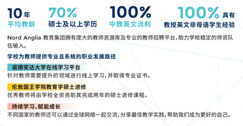 课程体系:小学及初中阶段在中国国家课程标准基础上融入国际先进的教学方法及教学资源,并通过IGCSE进行过渡,高中阶段通过A-LEVEL课程助力学生圆梦心仪大学