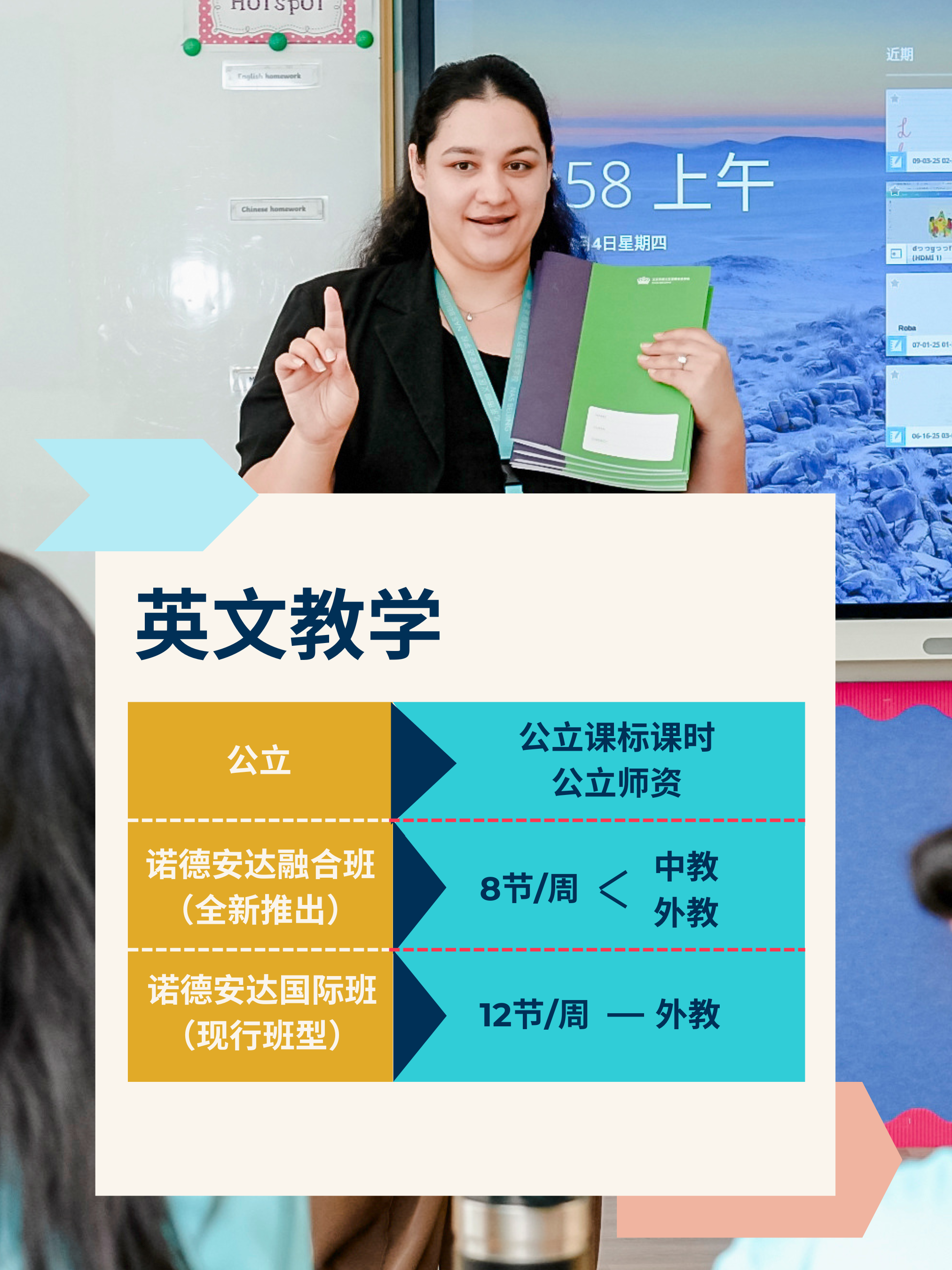 每周高比例外教英语,中外教协同教学,英语综合能力全 面提升