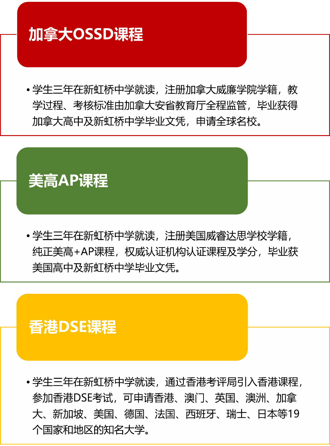 上海市民办新虹桥中学国际部先后开设加拿大OSSD、美高AP、香港...