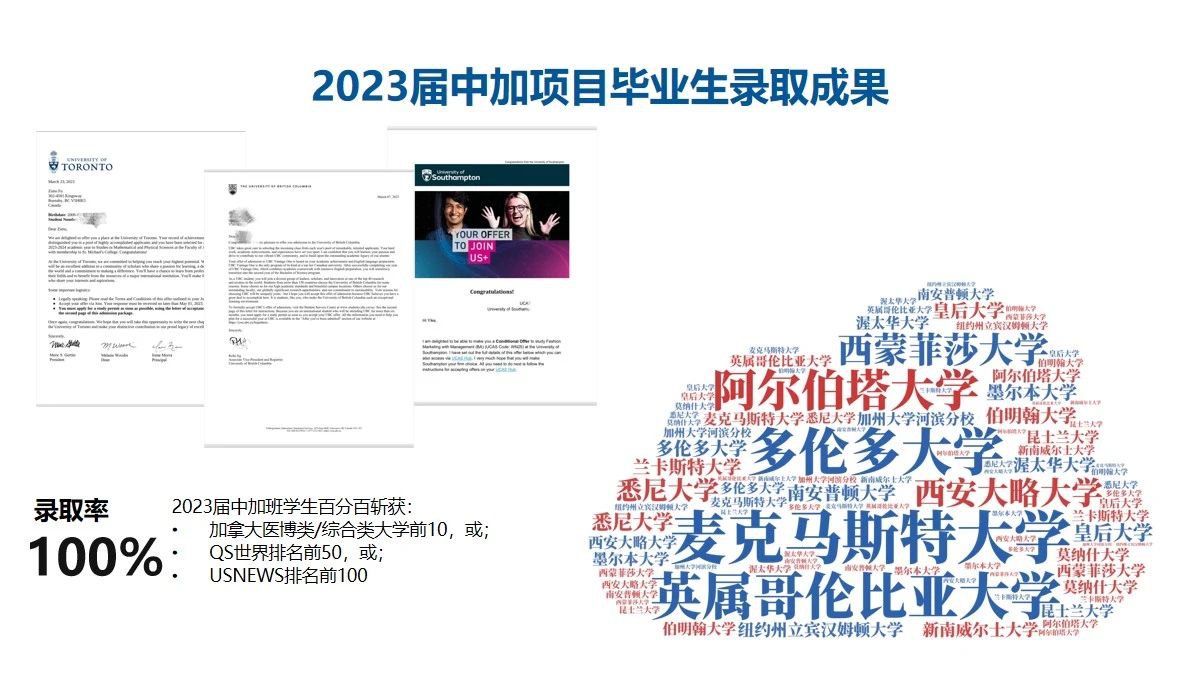 作为主流的国际课程体系,加拿大OSSD文凭课程和BC文凭课程的评价体系得到世界各国大学的认可,毕业生在往年的申请中都收到心仪的Offer。