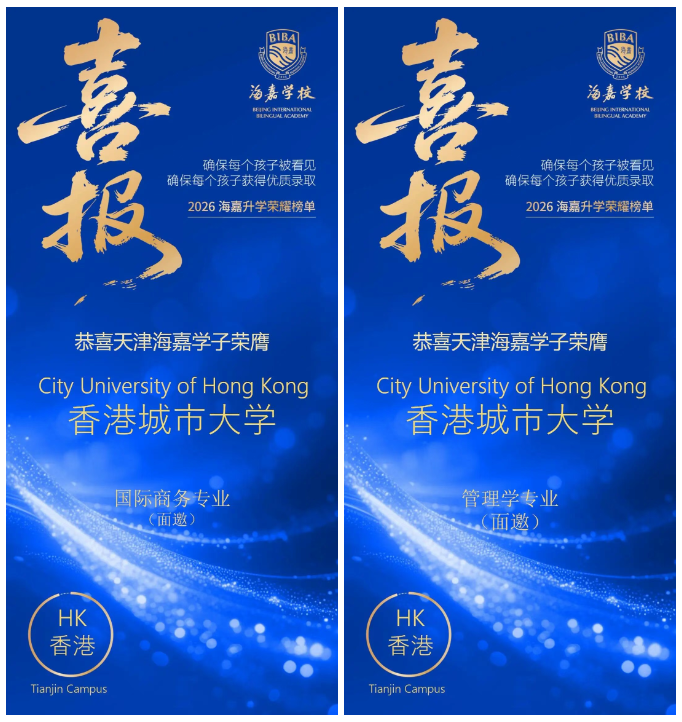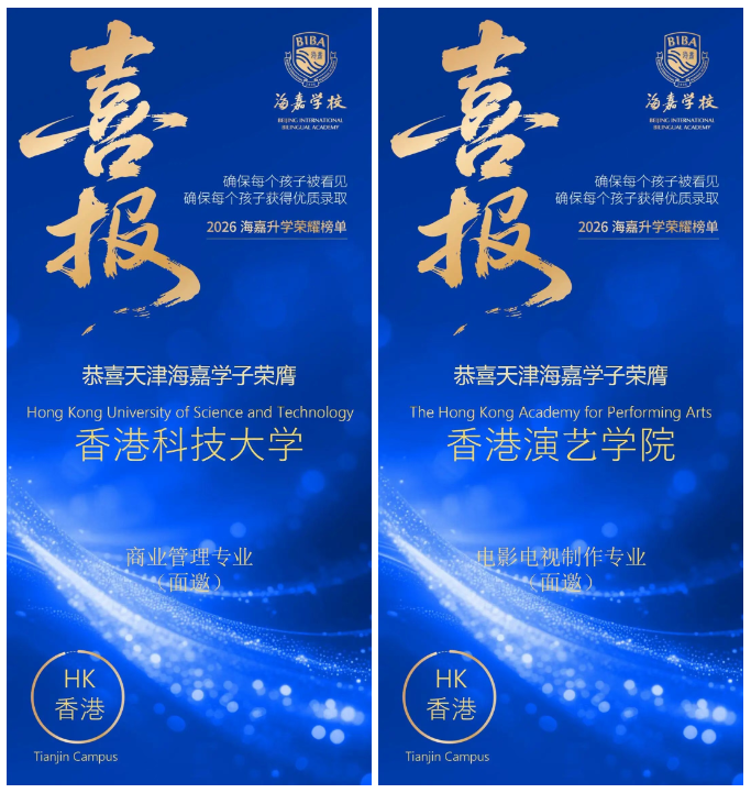 捷报如潮,硕果满枝!今年早申季,海嘉学子在全球升学舞台上熠熠生辉,众多世界名校纷纷抛来橄榄枝。截至2026年1月,天津海嘉学校中国香港录取方向再传佳音:香港科技大学、香港城市大学、香港演艺学院等知名学府的面邀喜讯陆续抵达,延续着这份不断生长的荣耀。