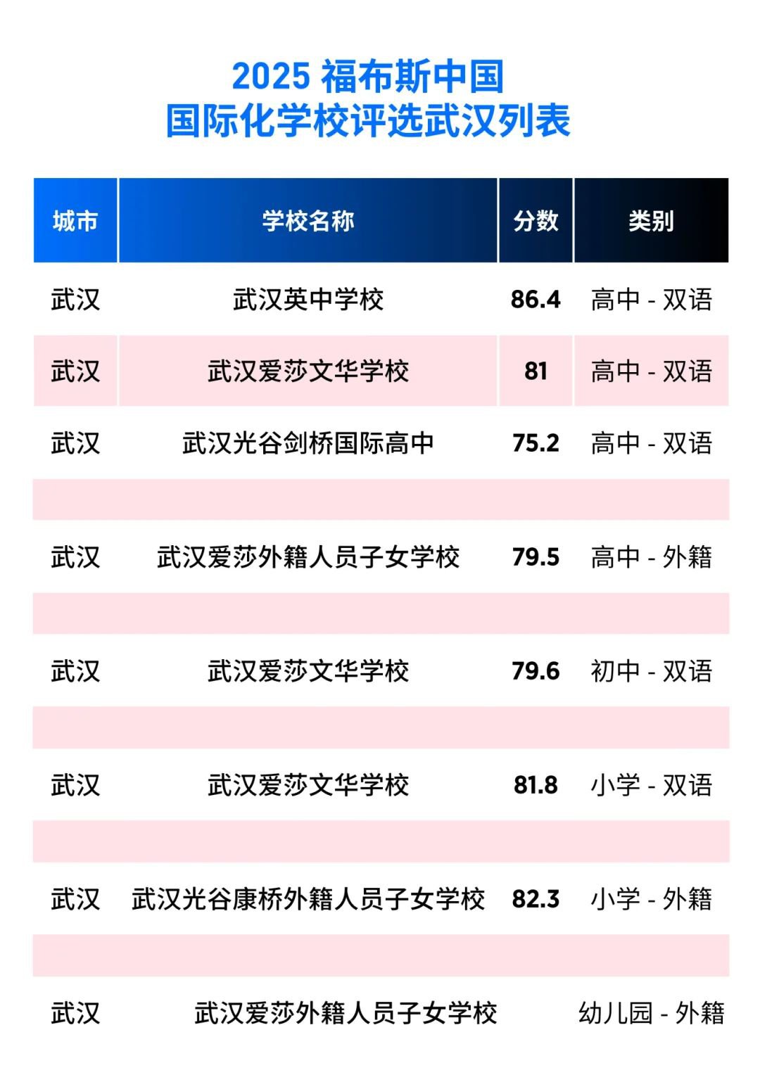 2025福布斯中国国际化学校年度评选结果近日重磅发布,这份权威榜单对全国3000余所国际学校进行了全面评估,为家长择校提供了重要参考。令人振奋的是,武汉共有6所国际学校成功上榜,展现了武汉国际化教育的蓬勃发展态势。