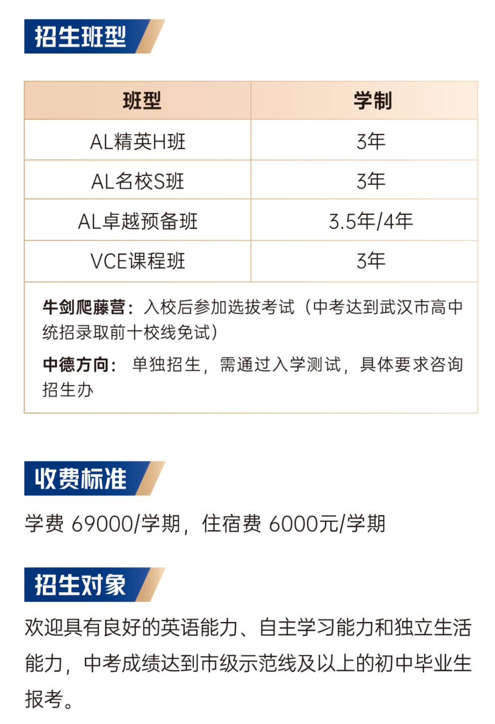 牛剑爬藤营:入校后参加选拔考试(中考达到武汉市高中统招录取前十校线免试)