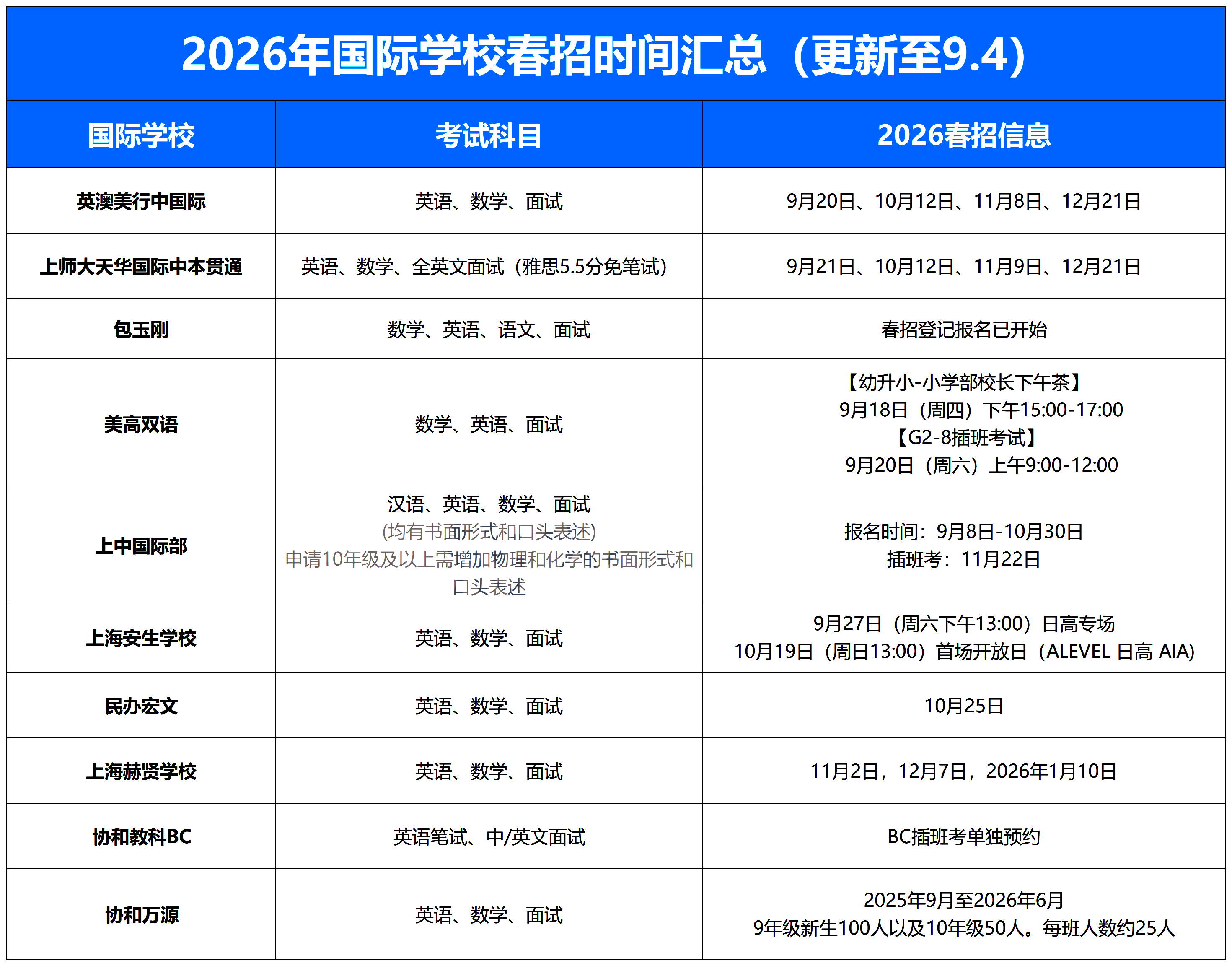 新学期刚启,上海多所头部国际学校已悄然打响2026年春季招生“第一枪”!包玉刚、WLSA(初中部)、上中国际、赫贤等热门校纷纷发布招生动态,春招战役正式打响!