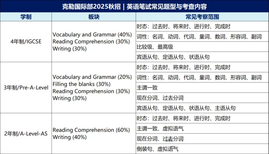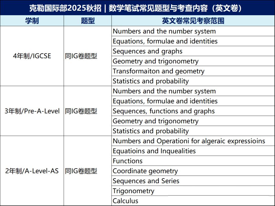 2025克勒国际部秋季招生,将对学生进行综合能力测试评估后,择优录取。