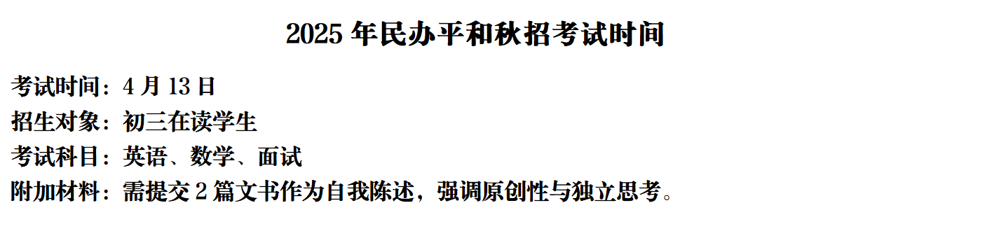 ✅ 关键提示:招生名额仅约50人,竞争激烈;考试科目为英语、数学、面试,注重双语能力与综合素质展示,适合擅长文理均衡发展、目标IB课程的学生。