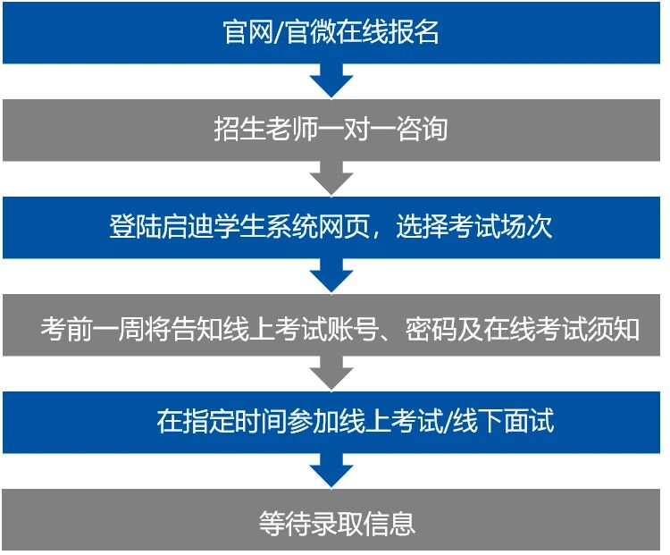 线上笔试完成后,综合成绩排名靠前的考生将在一周内会收到面试邀请,面试将采用线下一对一的形式在光华启迪淀山湖校区进行,请考生务必合理安排好笔试和面试的时间。在统一的面试结束后,光华启迪招生办将参照各位考生的笔试和面试成绩,以电子邮件形式通知所有考生关于本次入学考试的最终录取结果。
