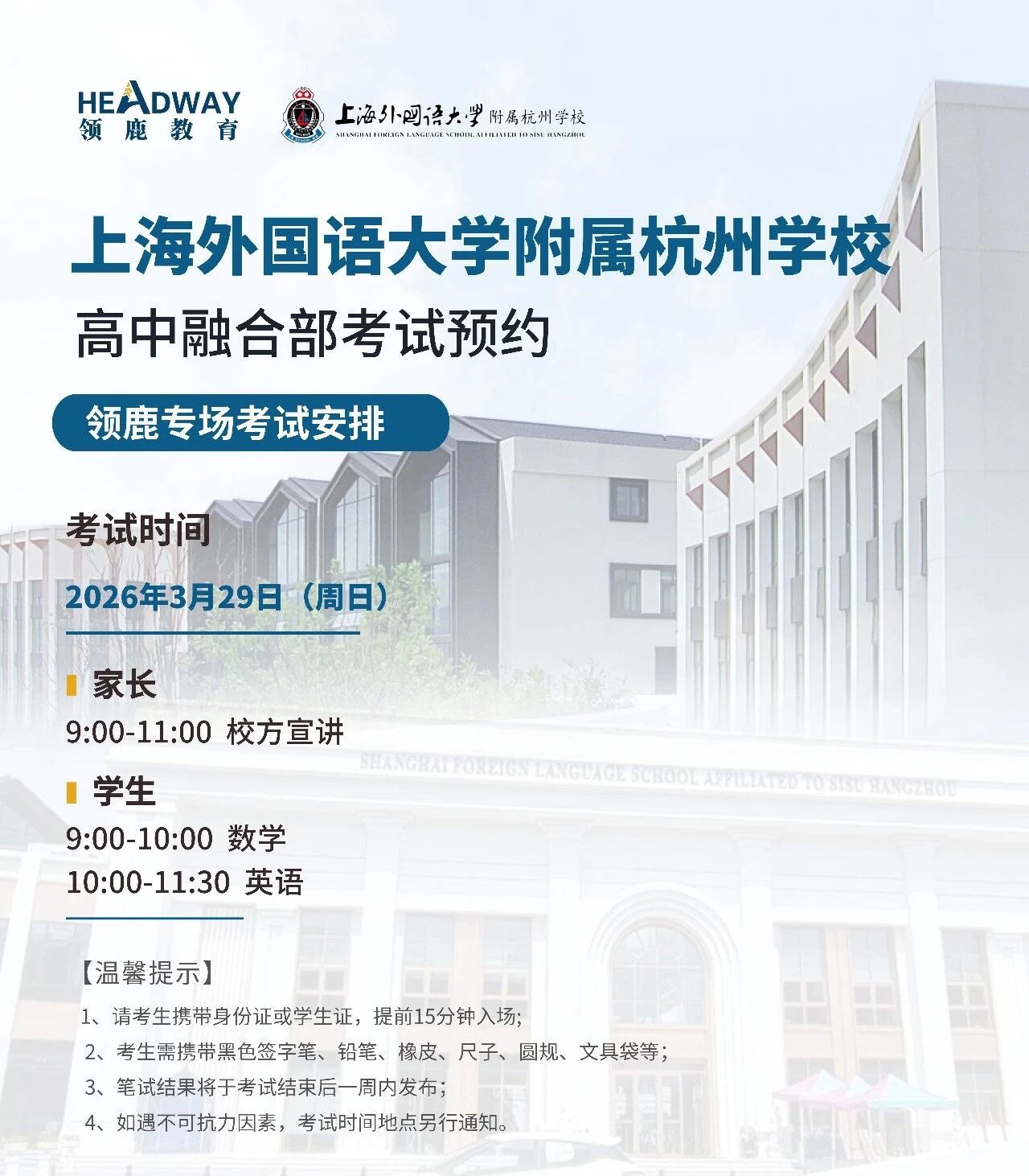这是上外附杭州本年度首场官方合作专场考试,招生计划充足、竞争压力更小,提前锁定名额,避开后续报考高峰,上岸概率大幅提升。